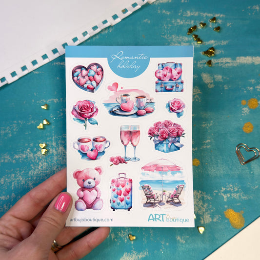 Romantic Holiday Decorative Sticker Sheet Valentine's Day Travel Theme