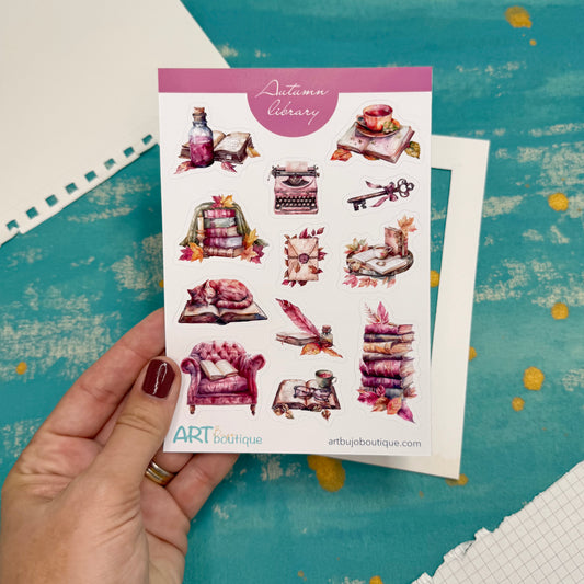 Autumn Library Decorative Sticker Sheet | Cozy Book Lover Stationery