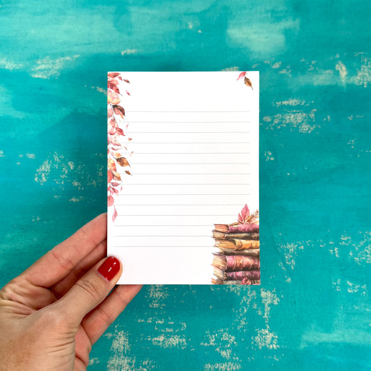 Autumn Library A6 Lined Notepad – Compact Fall Writing Pad for On-the-Go