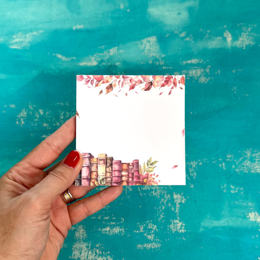 Autumn Library Square Notepad – 10x10 cm Cozy Fall Stationery