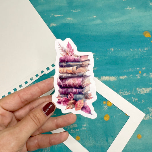 Autumn Library Stack of Books Vinyl Sticker | Vintage Book Lover Design