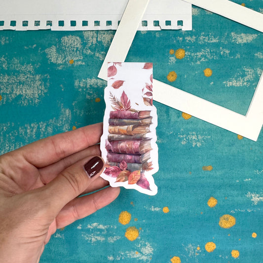 Autumn Library Stack of Books Magnetic Bookmark – Cozy Fall Book Accessory
