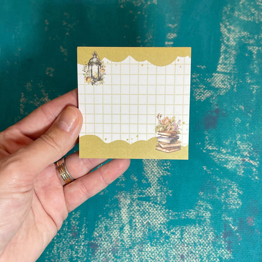 Autumn Library Square Notepad – 10x10 cm Cozy Fall Stationery