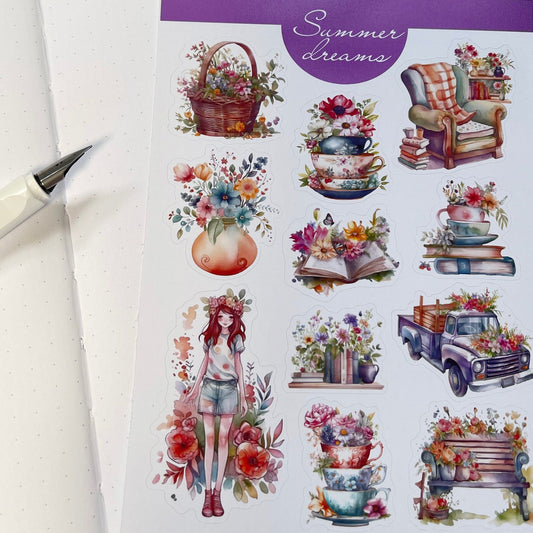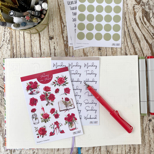 Rode rozen stickers bujo stickervel Bloemenstickers