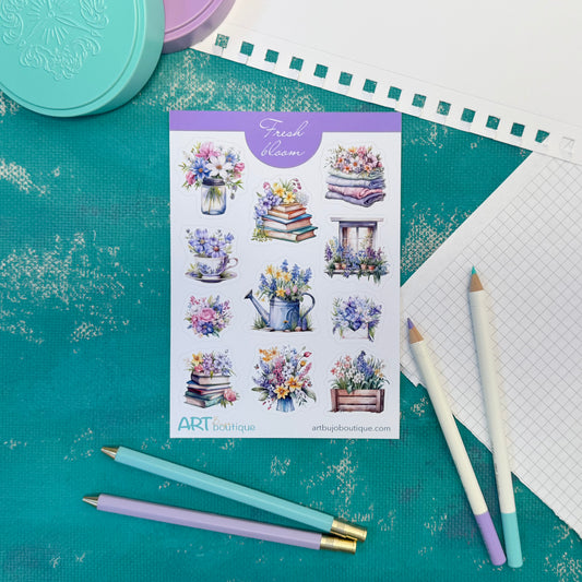 Fresh Bloom Decorative Sticker Sheet – Aesthetic Planner & Journal Stickers
