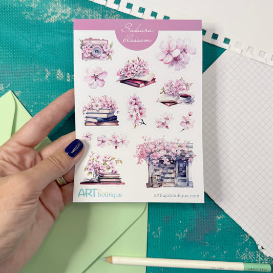 Sakura Blossom Decorative Sticker Sheet – Aesthetic Planner & Journal Stickers
