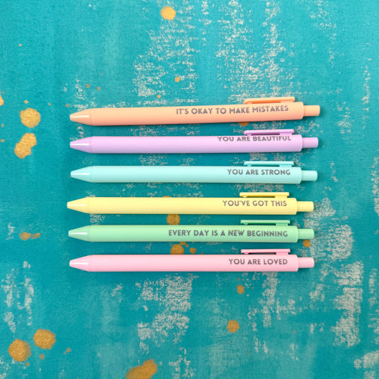 Macaron Colored Motivational Pens - Pastel Ballpoint Pens with Uplifting Quotes, Black Ink