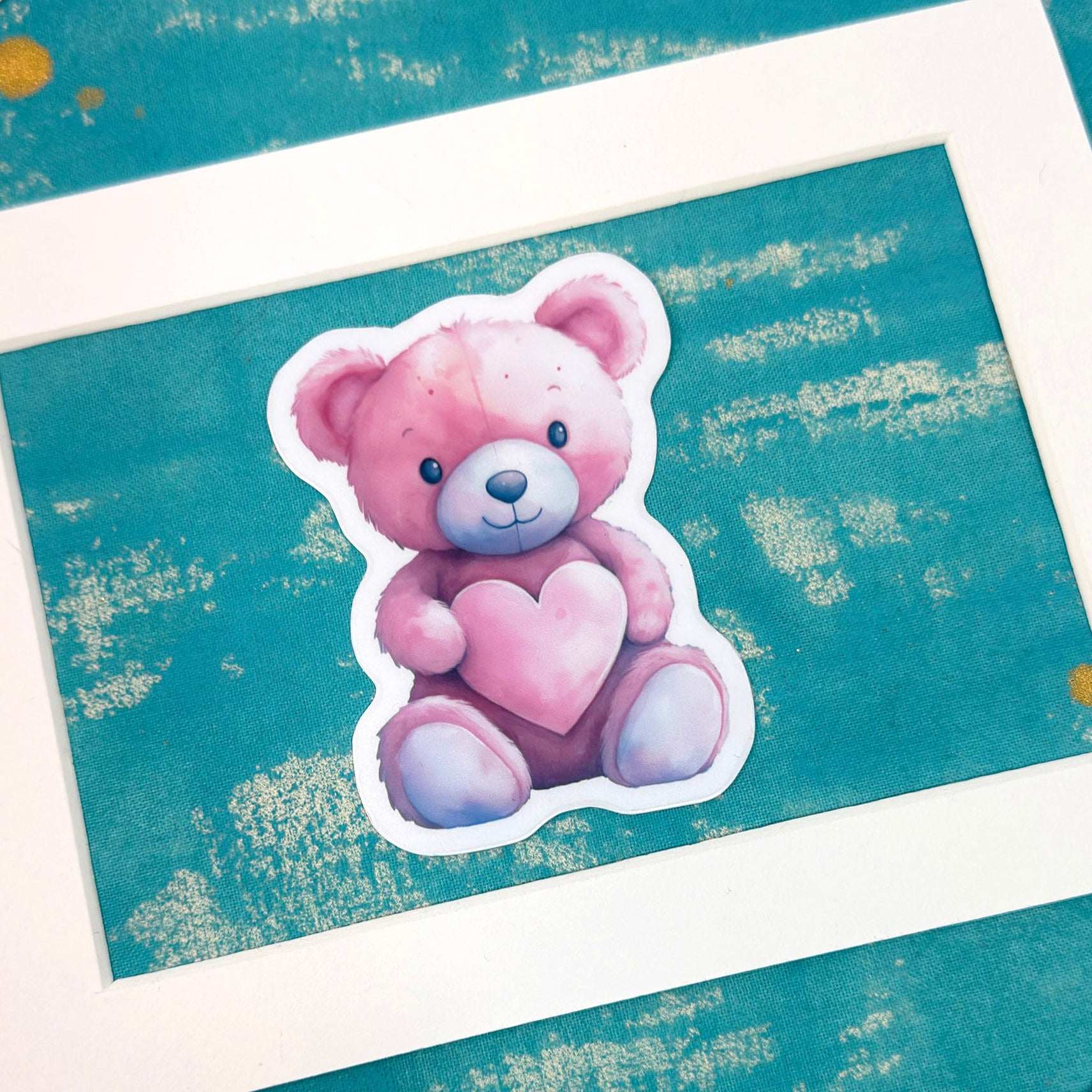 The Pink Teddy Bear Vinyl Sticker features a cute and romantic illustration inspired by cute stuffed bears and love. A lovely addition to planners, notebooks, or gifts.