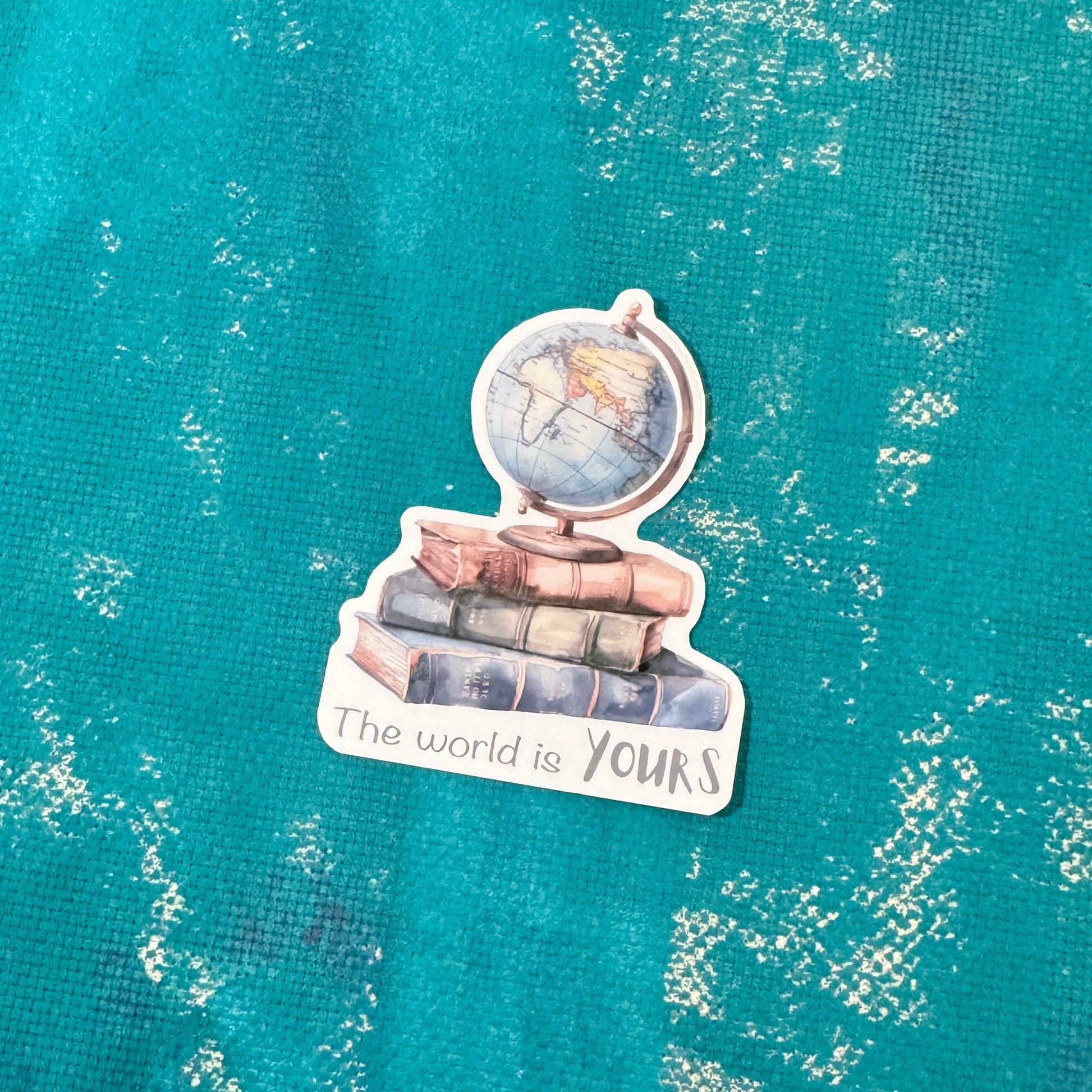The World is Yours Vinyl Sticker – Durable Sticker for Laptop, Water Bottle, Notebook