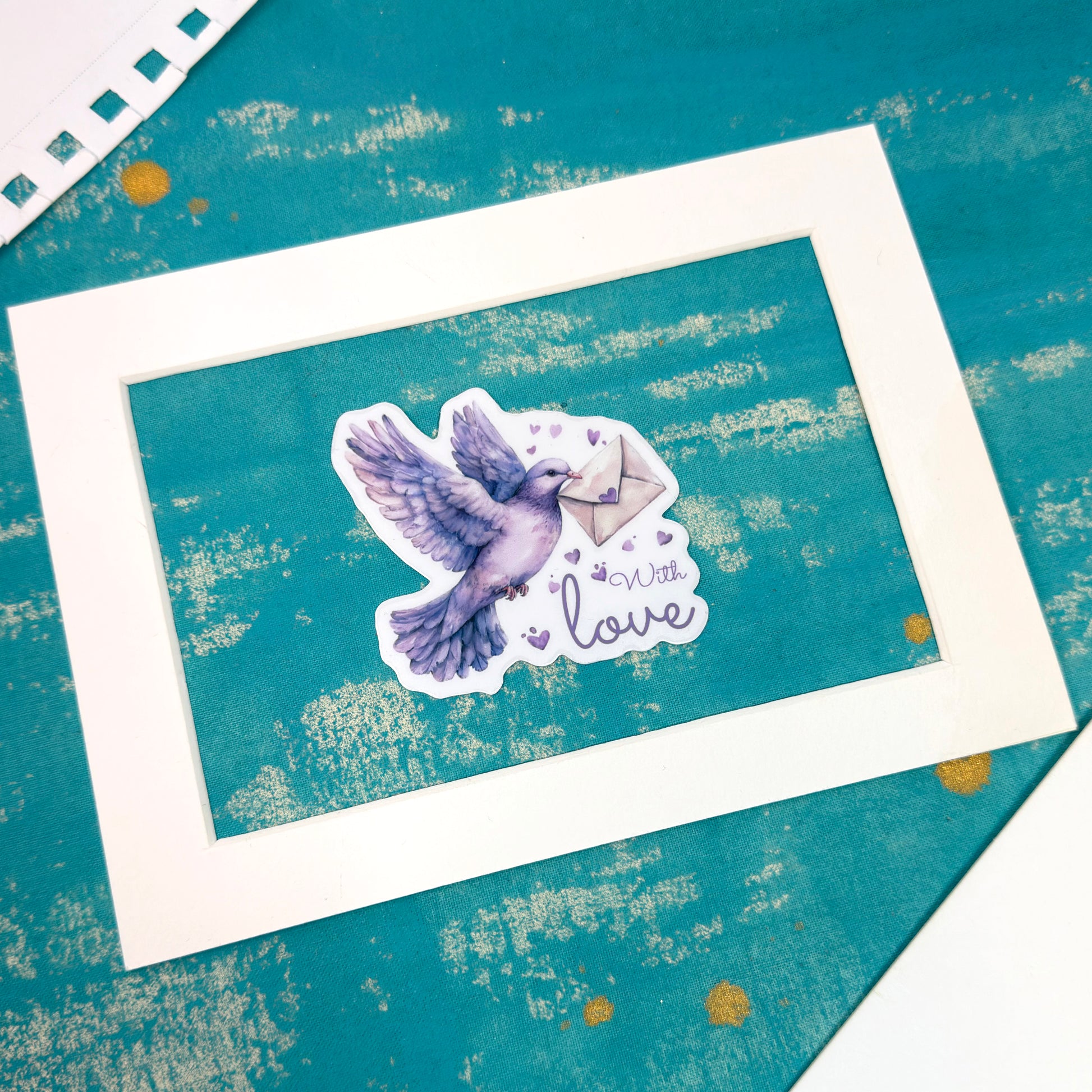 The With Love vinyl sticker features a romantic illustration inspired by love letters and soft vintage details. A lovely addition to planners, notebooks, or gifts.