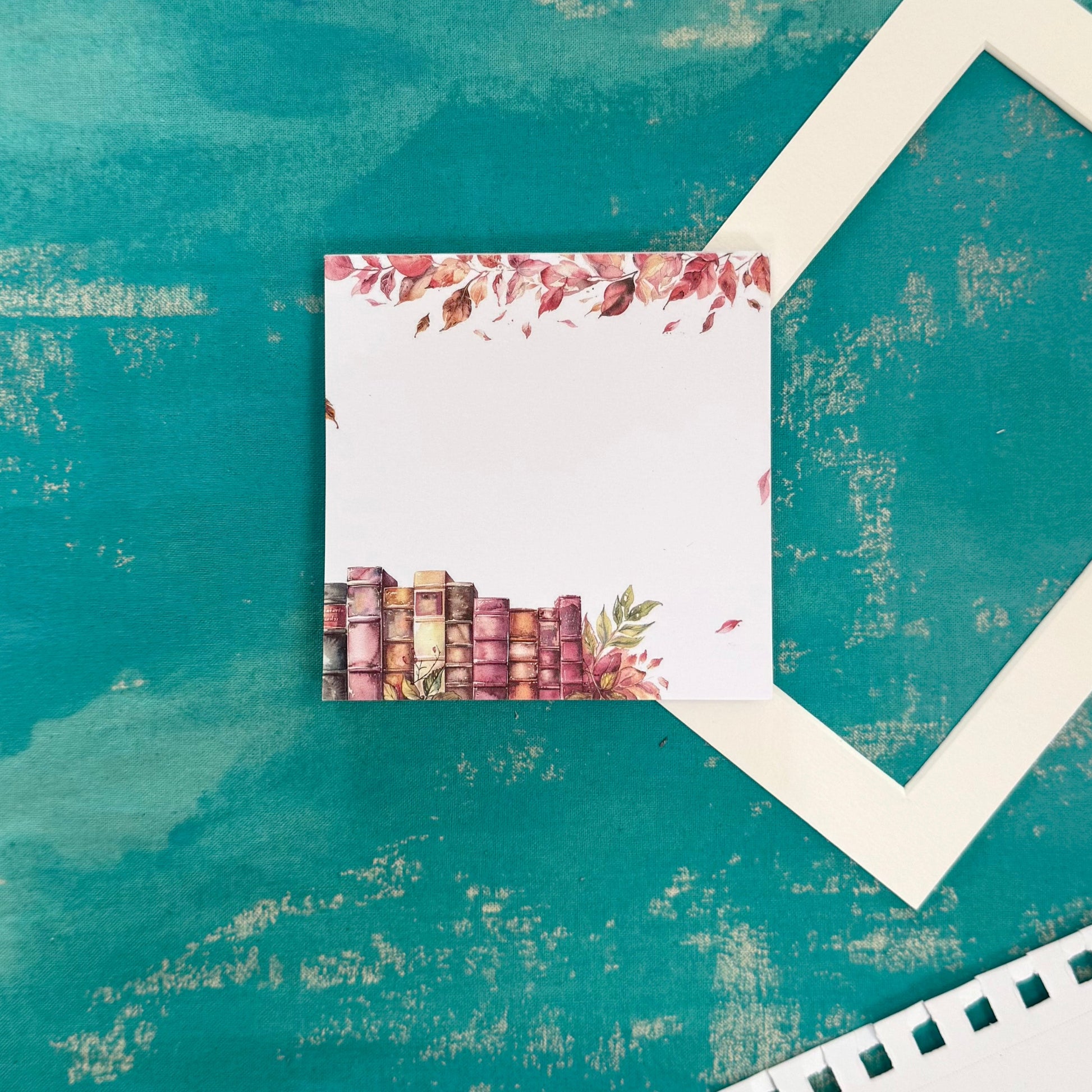 Autumn Library Square Notepad – 10x10 cm Cozy Fall Stationery